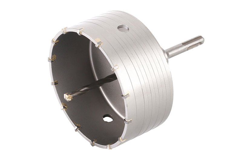 vykružovací / vrtací korunka s SK plátky a vodícím vrtákem uchycení SDS+ kvalitní SK plátky (SK - slinutý karbid), dlouhá životnost, rychlý prostup materiálem vodící - středící vrták usnadňuje práci a korunku přesně vede a drží na požadovaném místě pro vrtání větších průměrů do betonu, porobetonu, cihel a podobných zdících materiálů korunka není vhodná na vrtání železobetonu