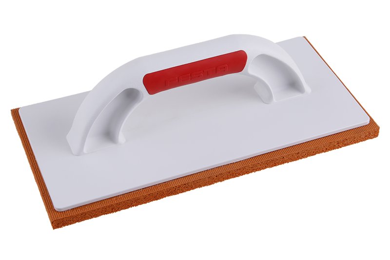 Hladítko FESTA s houbou, rozměr: 280 x 140 x 12 mm, základna z kvalitního plastu s ergonomickou rukojetí, použití: na smytí spárovací hmoty, dočištění jemné omítky, vyhlazení štukových omítek.