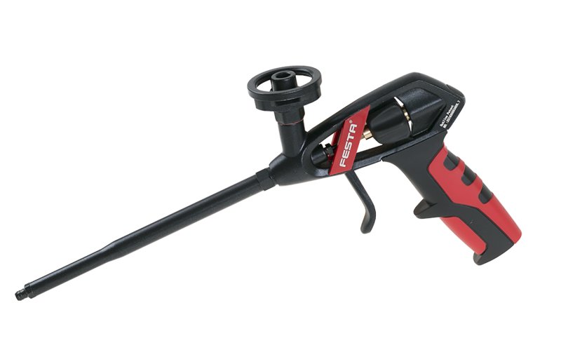 profesionální celokovová pistole na PU (polyuratové) pistolové pěny s teflonovou povrchovou úpravou plynulá regulace množství pěny, citlivá spoušť pro přesné a pohodlné dávkování, plastové aplikační trubičky pro přesné nanesení pěny na požadované místo závit pro uchycení s teflonovou vrstvou pro snadnější čištění teflonová kulička ventilu, vyměnitelná tryska 38030