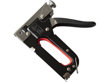 spony o velikosti 4 - 14 mm Sponkovačka s aretací, určená pro upevnění textilií, fólií, kartonů a lišt k dřevěnému a plastovému podkladu.