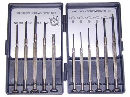 sada: 11 ks Sada hodinářkých šroubováků obsahuje nejpoužívanější tvary a velikostí hrotů pro jemnou mechaniku a optiku.