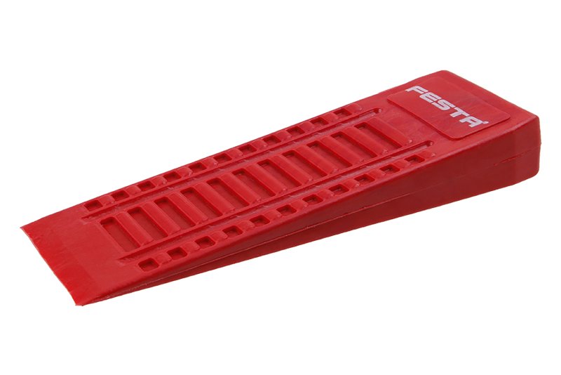 Tvrdý a pevný klín z nylonu. Klíny stejné velikosti lze díky drážkování v plochách klínu slučovat a tím zvětšovat úhel rozštěpu.
