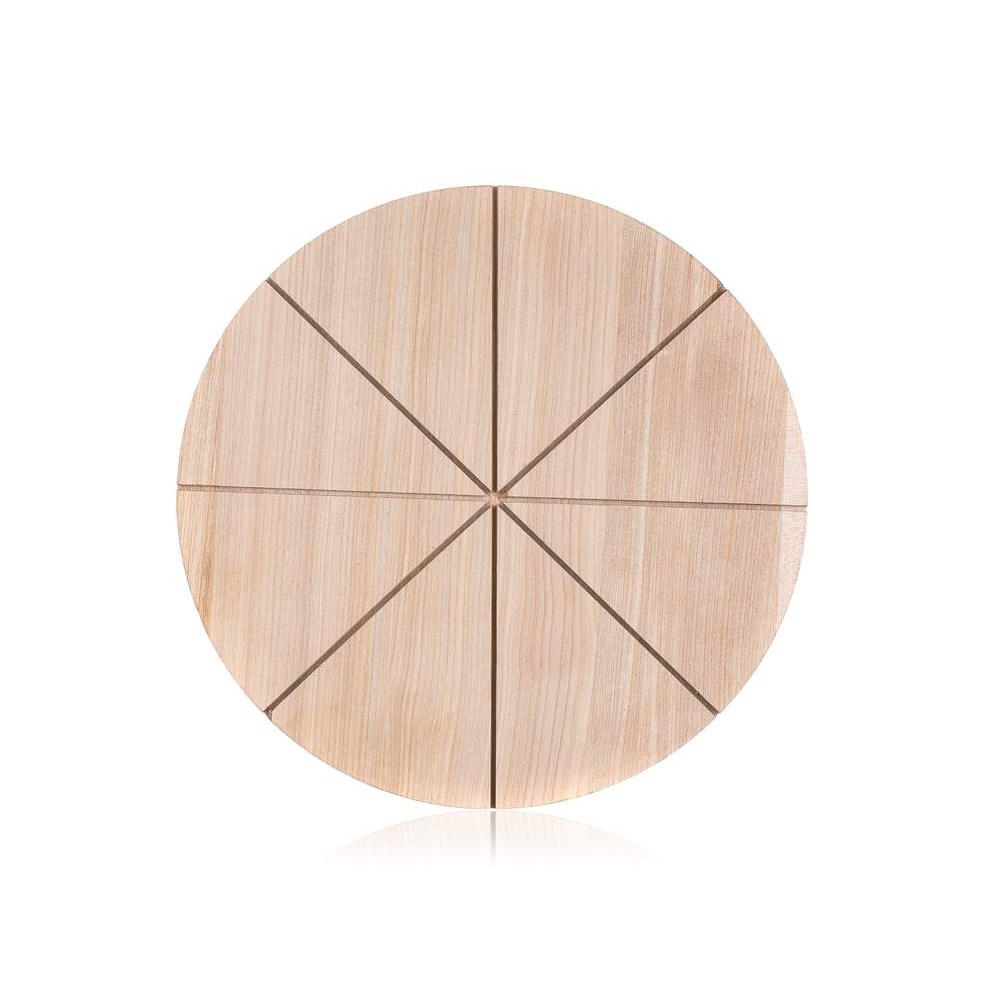 Dřevěné prkénko na pizzu 32 cm vyrobené z březového dřeva. Prkénko má kulatý tvar s podelnými drážkami pro snadné nakrojení pizzy, výška prkénka je 1,5 cm. Tradiční přírodní materiál pro přípravu potravin je určen pro ty, kdo dávají přednost dřevu před plastem.