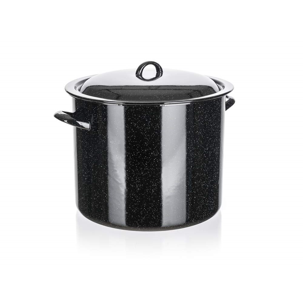 Smaltovaný hrnec s poklicí 14 l, rozměry: průměr 28 cm, výška 22,7 cm. Hrnec lze používat na všechny typy varných desek mimo indukce.