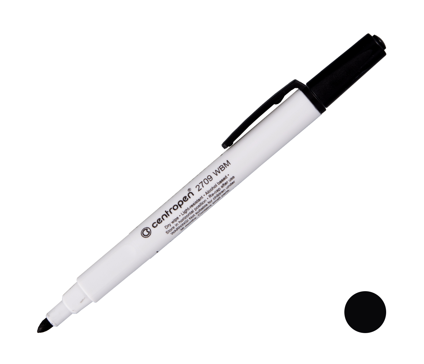 - značkovač na bílé stíratelné tabule s ergo úchopovým držením- vhodný je i na film, fólie, kov, plast, pryž, sklo, porcelán- za sucha stíratelný, permanentní, světlostálý inkoust na alkoholové bázi, zdravotně nezávadný, bez zápachu- skladovat ve vodorovné poloze, případně hrotem dolů- ventilační chránítko, po použití uzavřít - barva černá- šířka stopy 1,8mm- válcový hrot