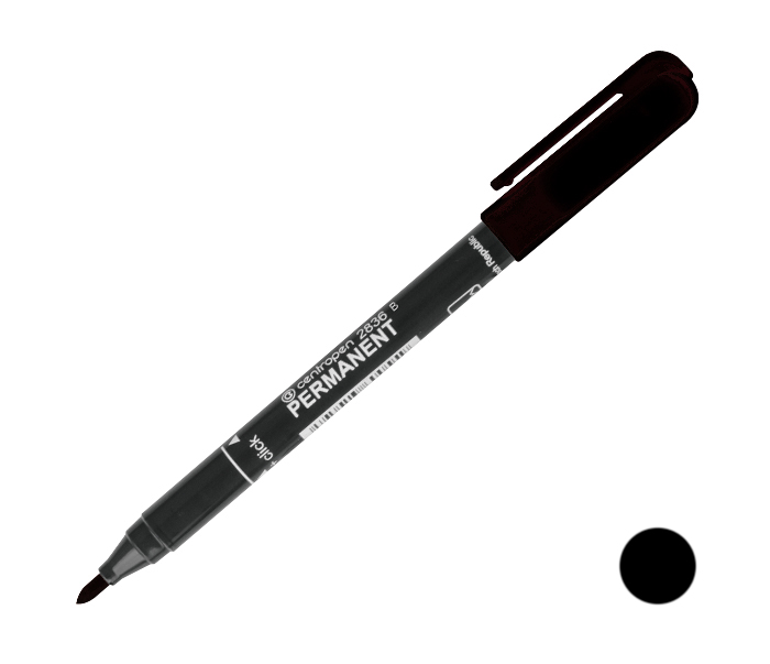 - univerzální permanentní popisovač, píše na většinu povrchů- je vhodný k psaní na papír, pryž, kůži, plast, beton, kámen, dřevo, film, fólie, kov, sklo, porcelán- permanentní, otěruvzdorný inkoust na alkoholové bázi, odolný vodě a teplotě do 100 °C- ventilační chránítko- barva černá- šířka stop 2mm- válcový hrot
