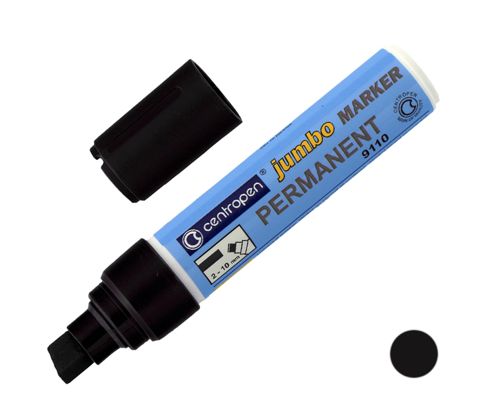 - univerzální značkovač s permanentním inkoustem na alkoholové bázi- odolá vodě, otěru, povětrnostním vlivům a teplotě do 100 °C - píše téměř na všechny druhy povrchů- ventilační chránítko- barva černá- šířka stopy 2 - 10mm- speciální klínový hrot jumbo
