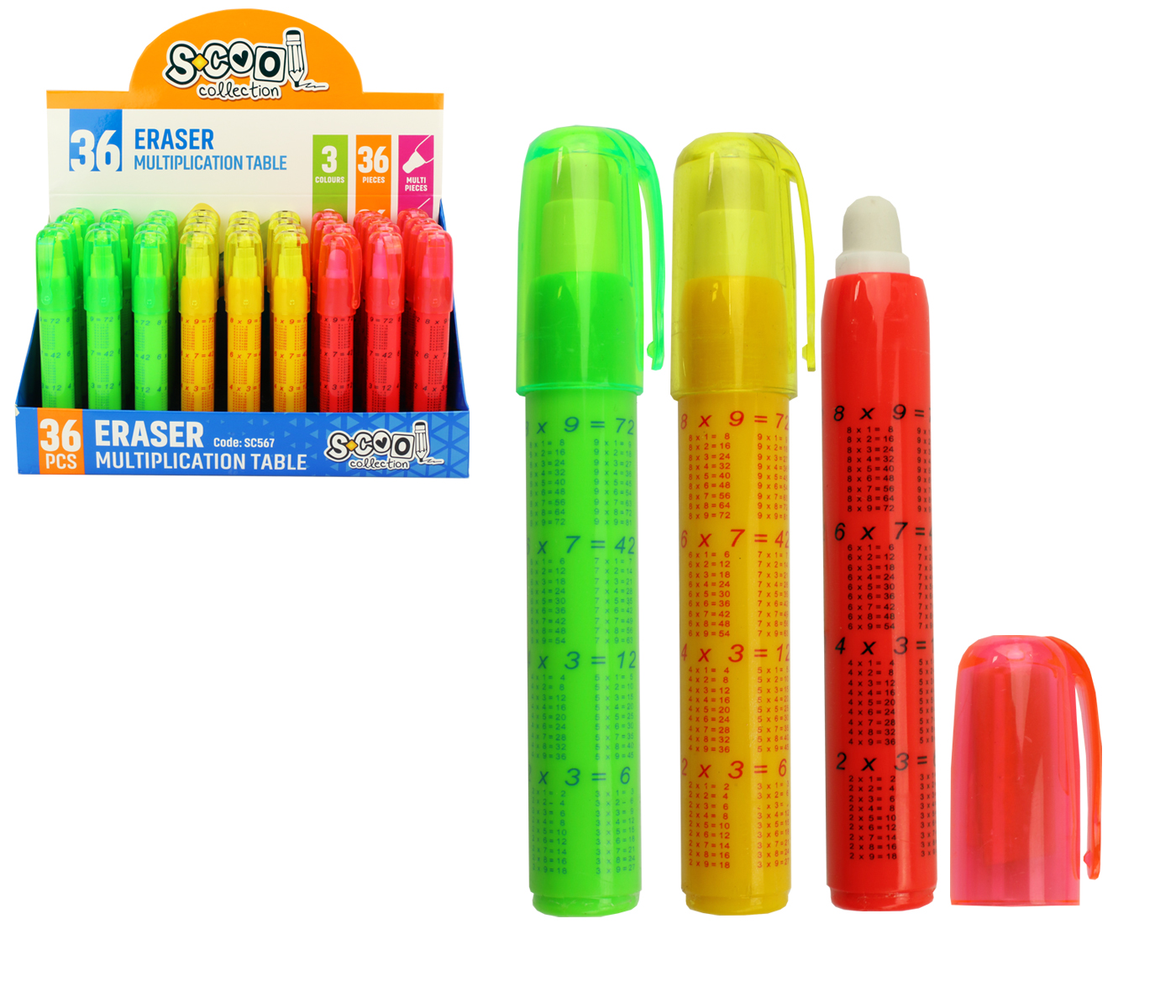- mazací guma v plastovém držáku pera- pro přesné a čisté odstranění grafitu a pastelu- po vypsání se guma vyjme, zatlačí zespodu do plastového těla a tím vytlačí novou gumu- obsahuje 5 gum- mix barev