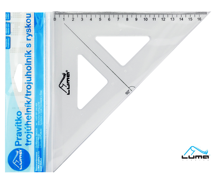 - PVC materiál- vhodné pro školáky, kanceláře i do domácnosti- délka 16cm- úhel 90° s ryskou- voděodolný potisk- ryska není tištěna (nesmaže se)