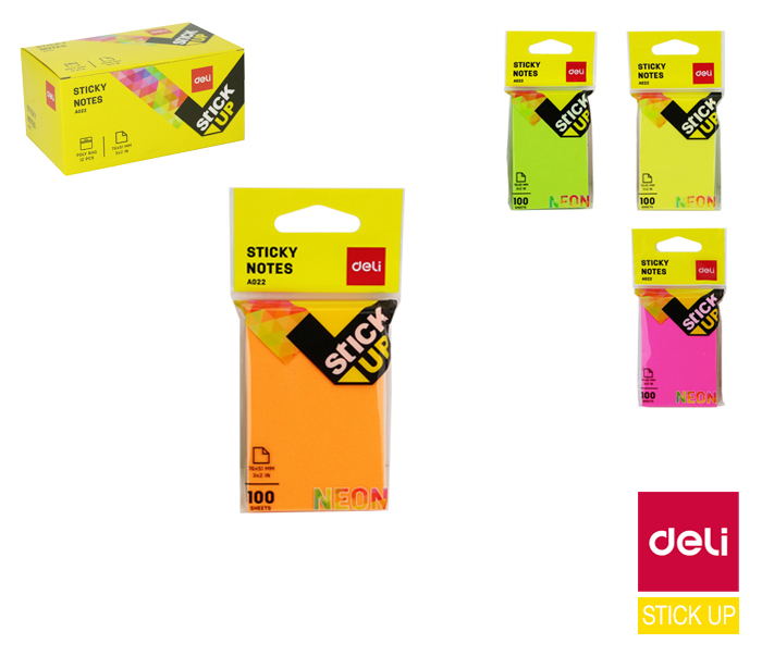 - samolepící bloček- opětovné použití- dobrá přilnavost- lepí po celém obvodu- mix neonových barev- 100 listů- rozměr: 76 x 51mm- gramáž: 75g/m²