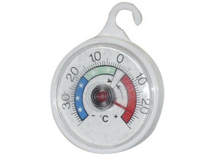 Kulatý plastový teploměr do chladniček a mrazniček, kde Vám pomůže udržet Vaše potraviny v ideální teplotě.