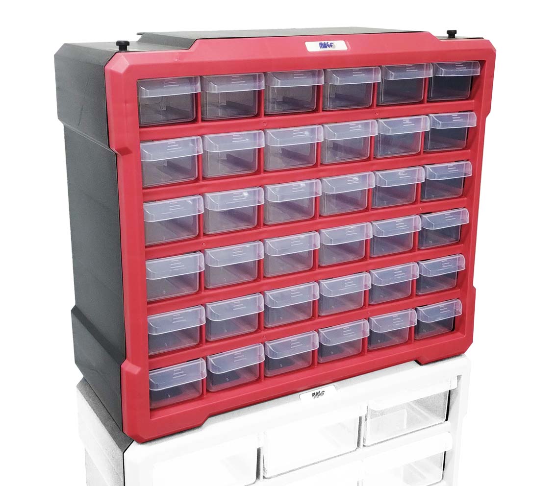 Plastová skříňka s 36 šuplíky je nezbytnou úložnou možností pro vaši dílnu. Je ideální pro uložení drobných předmětů, jako jsou vrtáky, šrouby, hřebíky, matice, podložky, kleště, šroubováky a mnoho dalšího. Skříňka je vyrobena z odolného plastu. Díky průhledným zásuvkám budete mít vždy přehled o uložených předmětech.