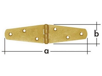 Poloviny závěsu se otáčejí kolem kolíku. Montáž se provádí přišroubováním. Závěs je vyroben ze žlutě pozinkované oceli a je odolný vůči korozi.