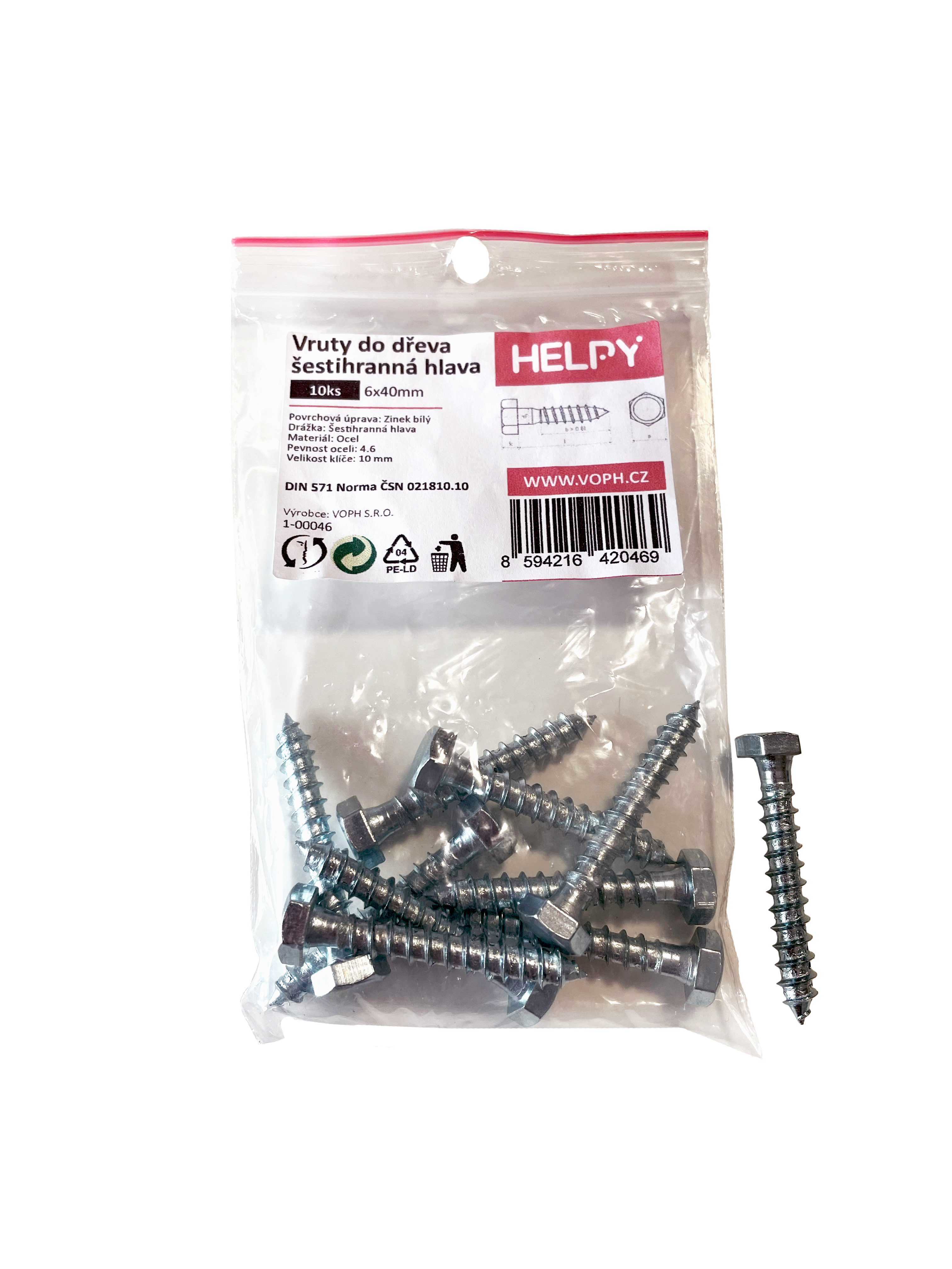 Vruty do dřeva, šestihranná hlava 6x40 10ks/balení