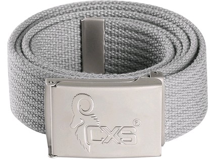 Textilní opasek s kvalitní kovovou sponou s logem CXS, jednoduché patentní zapínání, spona pro individuální nastavení délky. Součásti balení je praktický blistr pro prodejní stojany.