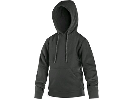 Dětská mikina s klokaní kapsou, kapuce napevno s možností stažení na šňůrku, pas a rukávy ukončeny pružnou manžetou z žebrovaného úpletu, reflexní šňůrky, vnitřní strana jemně počesaná. Finální silikonová úprava materiálu, která zajišťuje vyšší měkko