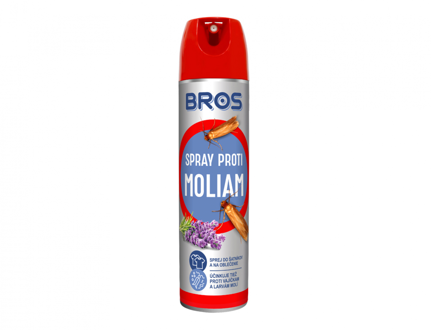 Aerosolový přípravek k hubení šatních molů. Působí okamžitě po aplikaci. Zanechává příjemnou vůni levandule. Dávkování: rozprašujeme na místa výskytu molů a jejich skrýše (škvíry, mezery, apod.). Po provedení postřiku opustíme místnost a ponecháme ji ještě asi 1 hodinu uzavřenou, poté ji důkladně vyvětráme. Balení: 150 ml.